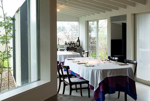 「イタリア郷土料理店 ロンブラ」は、中軽井沢の里山に建つ一軒家のイタリアンレストラン。イタリアの田舎にあるワイナリーに併設されているレストランのような佇まいが特徴です。