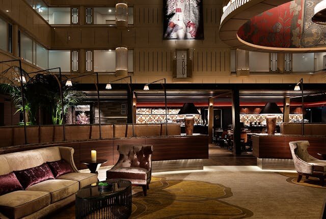「All Day Dining La Jyho」は、6階まで続く大きな吹き抜けが圧巻のレストラン。照明を控えめにした重厚感がただよう空間で、落ち着きある時間を過ごせます。