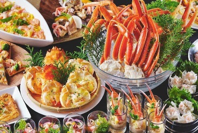 こちらでは毎年、カニが食べ放題のブッフェを開催。ボイルされたカニはもちろん、海鮮丼やカニの甲羅のグラタンなど、カニ好きにはたまらないメニューが並びます!