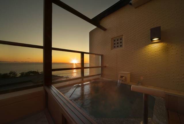 客室露天風呂からは、海を眺めてゆっくりとお過ごしください。