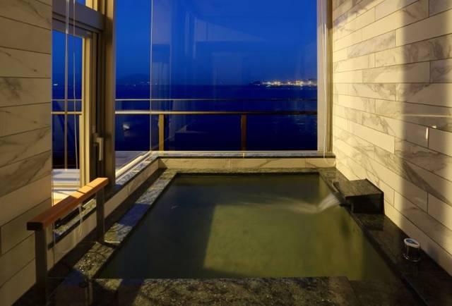 全室オーシャンビューの客室露天風呂から月と星と灯台を一人占め!