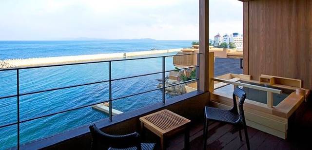 全室オーシャンビューのお部屋で、露天風呂からは駿河湾と三四郎島を一望できます。