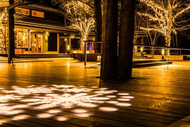 夜にはライトアップされ、幻想的な空間へと早変わり!全国でも指折りのラグジュアリーな空間を演出しているテラスです。