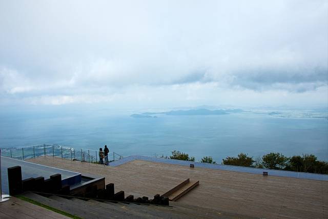 「びわ湖テラス」は1,100mの高さから琵琶湖の大パノラマを一望できる全国屈指の人気スポット。3段構造になったウッドデッキ調のテラスはモダンで落ち着いた雰囲気で、贅沢な大人時間を過ごすのにピッタリです!
