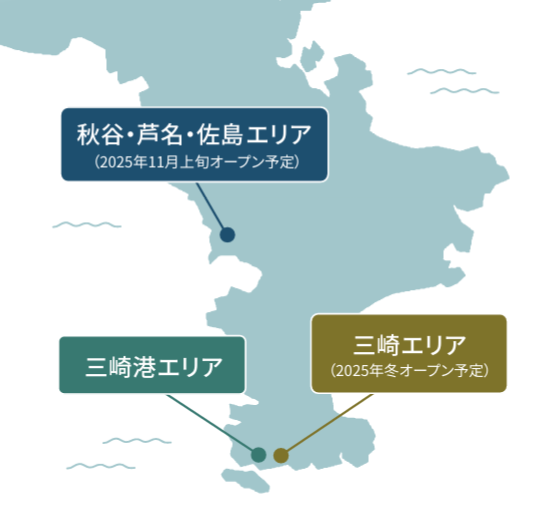 「横須賀秋谷・芦名・佐島エリア」「三崎港エリア」「三崎エリア」のエリアごとの魅力をカードで陳列。自分だけのオリジナルプランを作ろう!