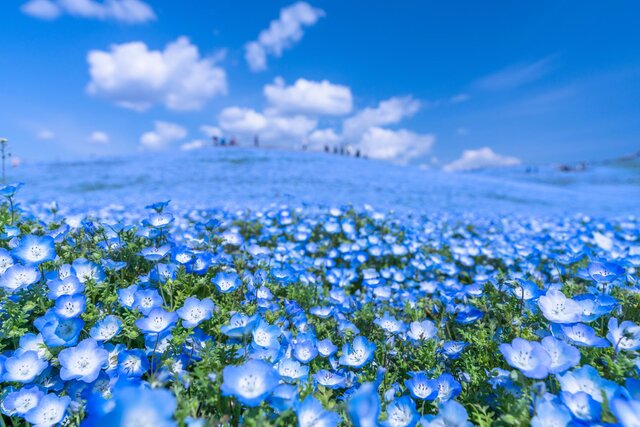 春の花絶景で全国的に知られる人気スポット。広大な園内では四季折々の花が楽しめますが、なかでも4月中旬から5月上旬に見頃を迎えるネモフィラは圧巻です。