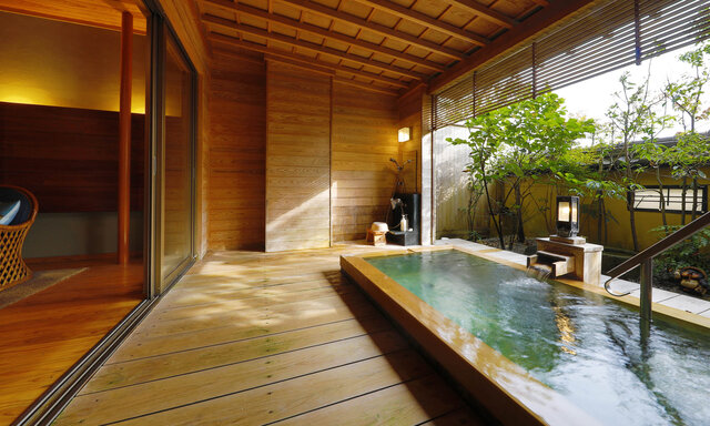 専用リビング付きの貸切湯浴み処は、和風の「桧」と洋風の「碧」の2タイプ。