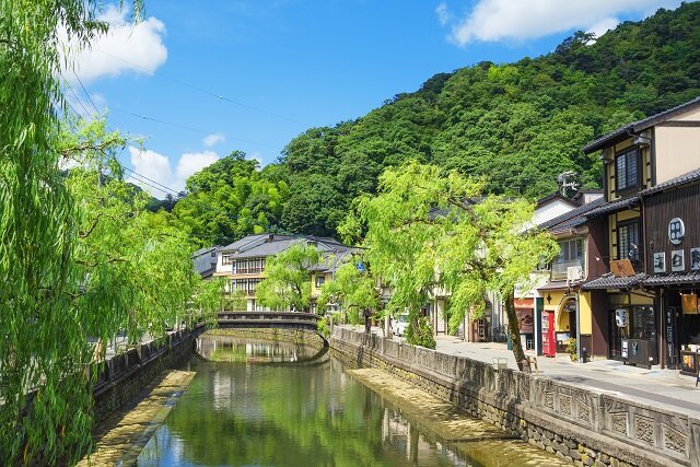 城崎温泉は日本海側の北部エリアにあり、川に柳の枝が垂れ下がる風景が温泉情緒たっぷり!