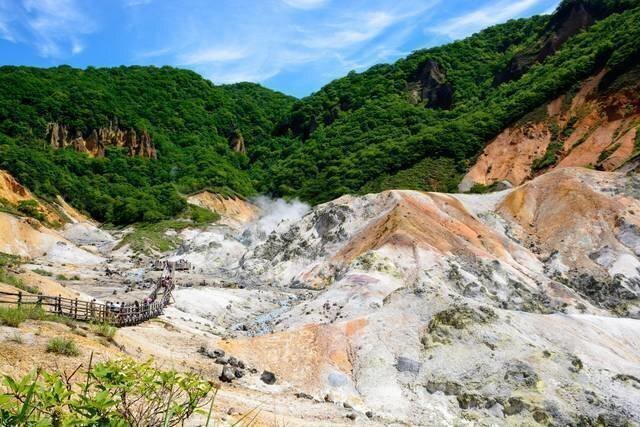 登別温泉を代表する観光スポット「地獄谷」は自然の力を間近に感じられる場所で、いたるところから湯気が立ち上がり、硫黄の香りが漂う独特の雰囲気を楽しむことができます。遊歩道が整備されているので、散策しながら温泉の源泉を体感することができます。