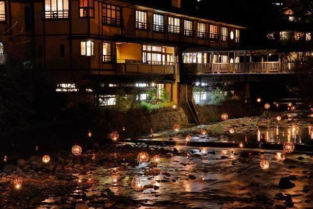 冬季に開催される「湯あかり」は、竹の再生活動の一環として始まり、温泉街全体が幻想的な光に包まれます。