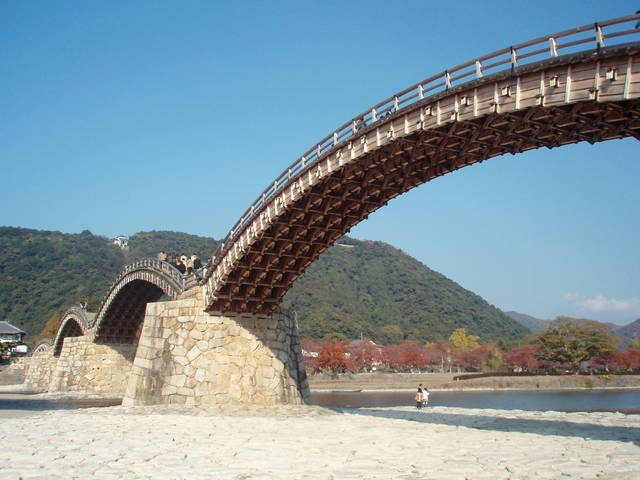 木造で5連のアーチ状の美しい橋、錦帯橋は日本三名橋にもなっています。