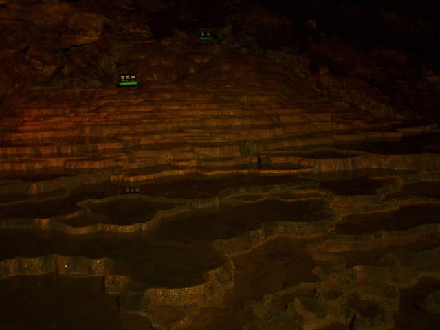 火山活動によって作られた鍾乳石は見事で、洞内はライトアップされていて、神秘的!!