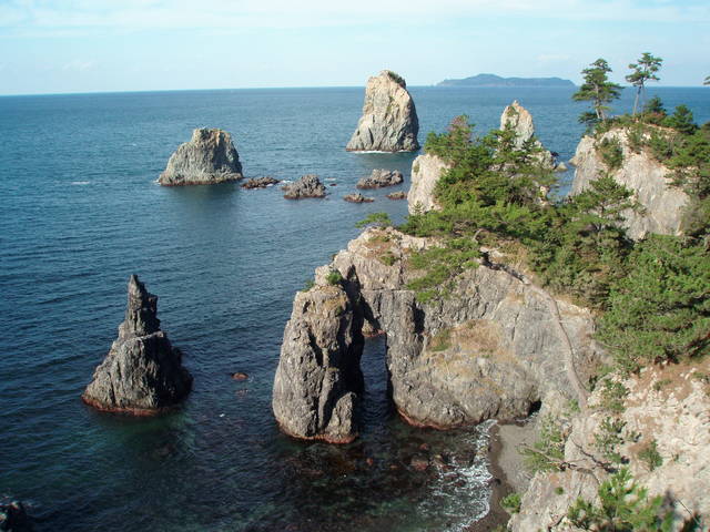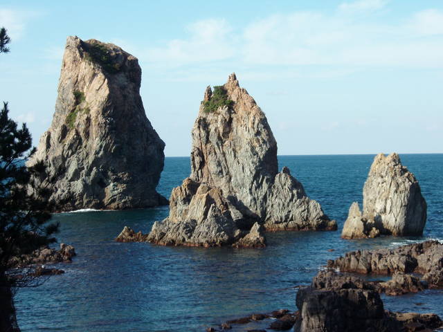 断崖絶壁の岩が立ち並ぶ青海島は日本海の荒波が造り上げた洞窟や断崖、奇岩が多くあり、「海上アルプス」とも呼ばれています。