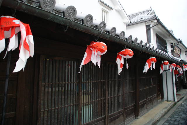 白壁の町並みを散策すると、醤油の蔵の見学ができたり、柳井市の民芸品であるかわいらしい金魚ちょうちんがぶら下がっている光景が見られます。