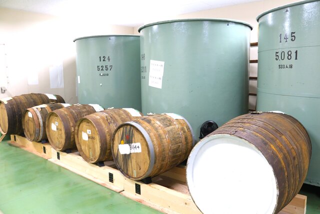 また、緑川酒造では、樽に入れて熟成し、新しい風味の日本酒も作っています。