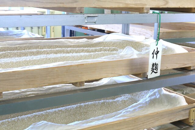 蒸米の一部に麹菌を繁殖させ、米麹を作ります。