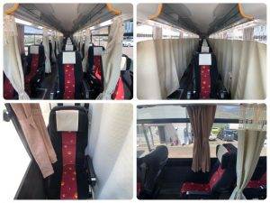 車内の飛沫感染防止の為、抗菌効果のある医療用カーテンを設置しています。