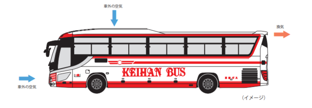 ・バス車内の空調につきましては、外気導入空調を使用し車内の換気を行っています
