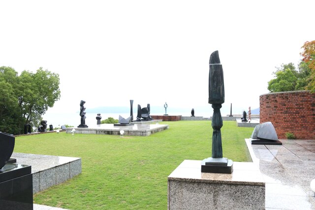 瀬戸内海を望む広大な芝生の上に広がり、約150点の作品が自然と一体となって展示されています。