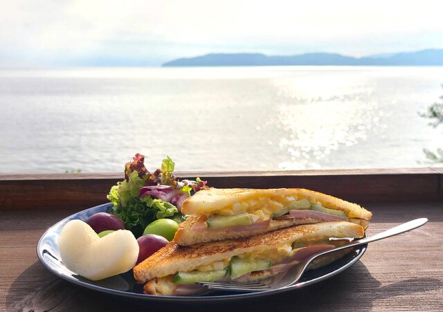 「時の納屋」は瀬戸内海に大きく突き出した大串半島の高台、大串自然公園内にある瀬戸内海の絶景と地元の味が楽しめる人気のカフェ。