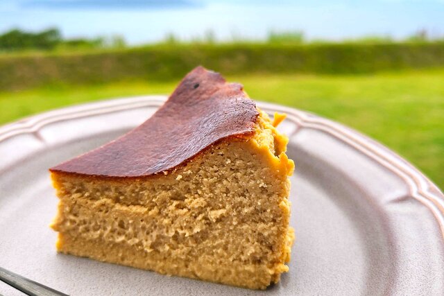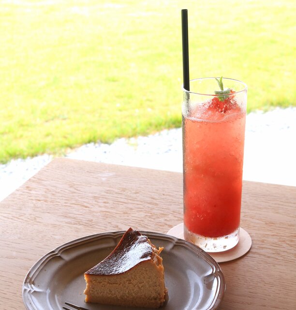 食事は地元食材を使ったおにぎりランチや牛すじカレーなどがありますが、特におすすめなのはなめらかな口当たりと濃厚なチーズの風味が特徴の「バスクチーズケーキ」。