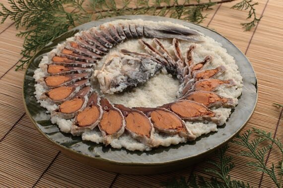 琵琶湖の固有種である天然のニゴロブナと近江米を使用し、昔ながらの木桶仕込みで熟成させた名物・鮒寿しを製造販売しています。