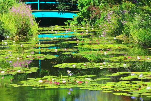 睡蓮の咲く池や、色とりどりの花々に囲まれた小径は、まるで絵の中に迷い込んだよう。どこを切り取ってもまるで一枚の作品のような環境を楽しめます♪