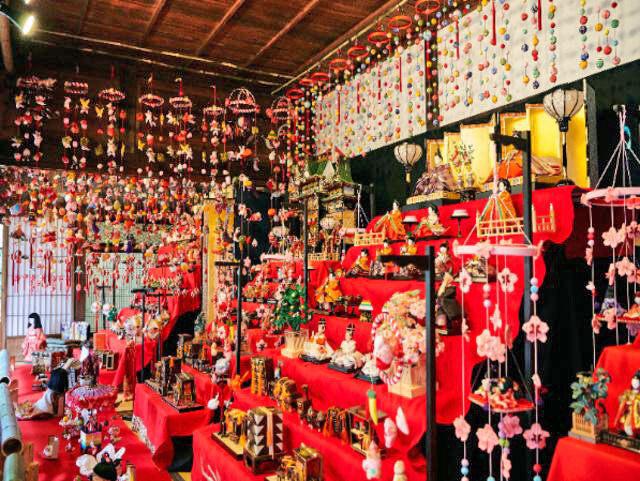 築300年の古民家で行われるひなまつりは江戸時代の風情がいっぱい。地元の蔵から発見された300年前の「享保雛」や、瀬戸屋敷収蔵の雛人形の数々、婦人会手づくりの10,000個以上の「つるし雛」、高さ2.4mの「大つるし雛」が展示される。