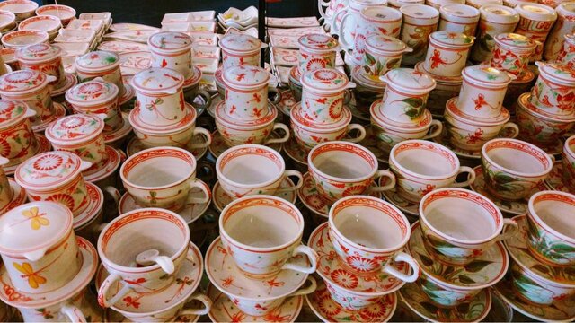可愛らしいデザインが特徴の伝統的な陶磁器。バッチャン村や旧市街のハンザ市場で購入可能です。