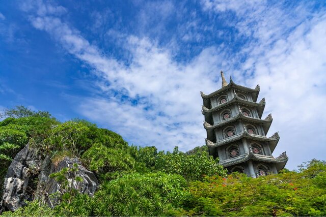 五行山(マーブルマウンテン)を探検。5つの大理石の山からなるパワースポットで、洞窟や寺院、展望台からの景色を楽しめます。ランチはダナン名物「ミークアン」を人気店「ミー・クアン・1A」で味わいましょう♪
