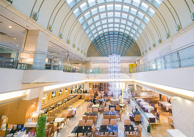 19階レストランフロアの吹き抜けドーム下の開放的なラウンジです。
