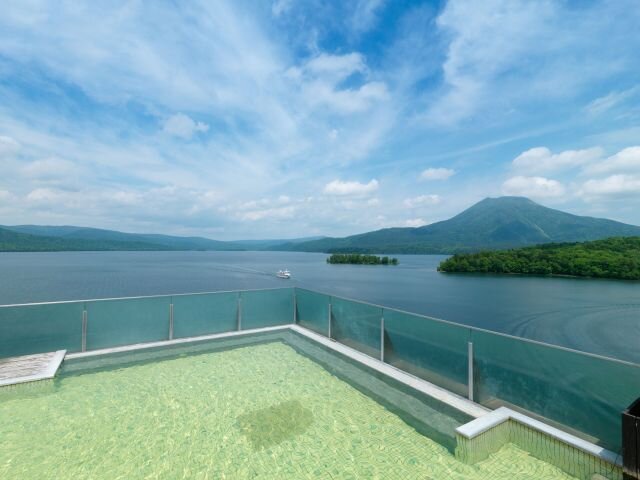屋上にある天空露天風呂からの眺めは圧巻。ドーム型展望サウナを併設しており、サウナに入りながら阿寒の大自然を満喫できます。