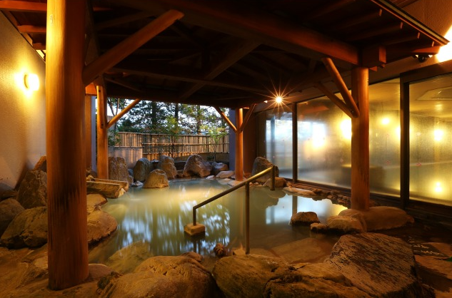 30mの広々とした浴槽を備えた大浴場をはじめ、露天風呂や別湯で温泉を満喫できます。館内では3種類の源泉を楽しめ、露天風呂では共同浴場では味わえない、にごり湯・綿の湯源泉に浸かれるのも特徴です。