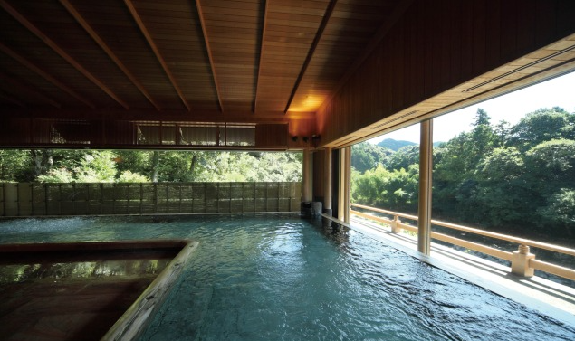 日本三名泉のひとつ・下呂温泉は、湯上がり後は肌がなめらかでつるつるになることから、美人の湯として知られている温泉地。飛騨川沿いに建つ高級旅館「水明館」では、檜の香り漂う「下留の湯」、野趣に富む野天風呂、温泉街や飛騨の山々を一望できる展望大浴場など、趣の異なる3ヵ所の大浴場で名湯につかれます。