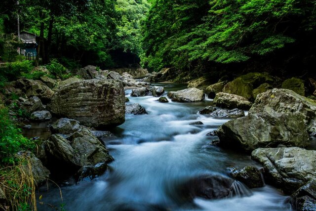春には咲き誇る桜、夏には涼やかな新緑と清流、秋には渓谷を染める紅葉と、季節ごとの自然美が楽しめます。川のせせらぎや鳥のさえずりがとても心地よいですよ♡