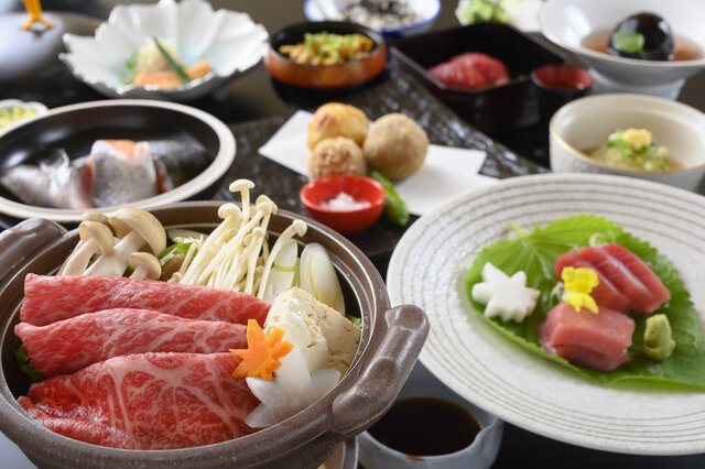 夕食では山梨のブランド牛である甲州牛を楽しめます。