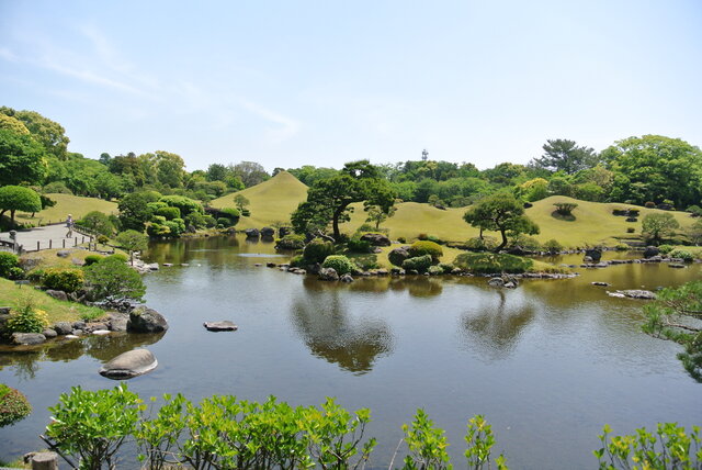 「水前寺成趣園」は、肥後細川家の初代熊本藩主・細川忠利が寛永13年(1636年)に作庭を始め、3代約80年かけて造営された桃山式回遊庭園で、国の名勝及び史跡に指定されています。