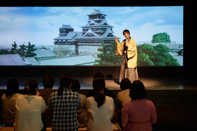 江戸時代から熊本地震被災前の熊本城の姿を大迫力のVRで再現し、時代を行き来しながら熊本城の歴史や、堅牢な守り、石垣の迫力、城の役割などを最新のVR映像とスタッフのライブ解説で紹介します。