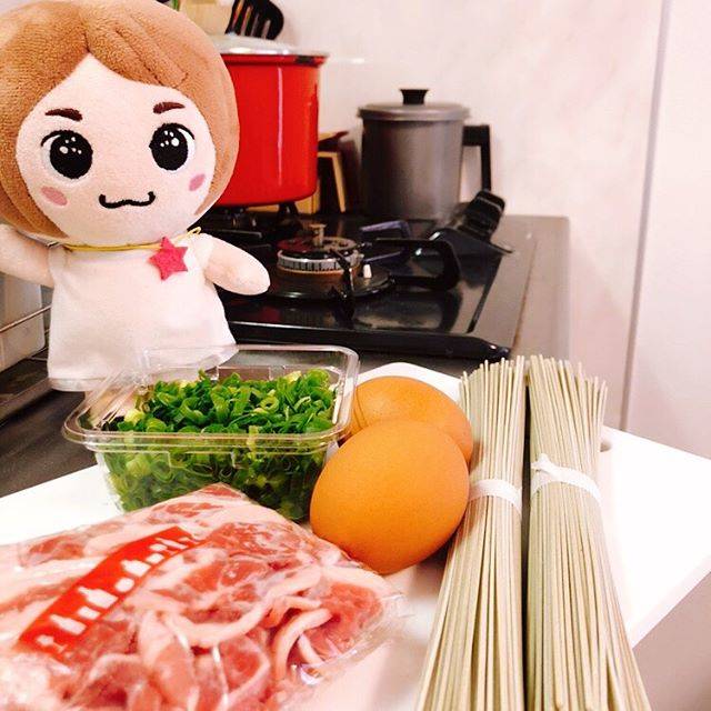 お蕎麦を茹でてからフライパンで表面がパリッとするまで焼くのがポイント❗️