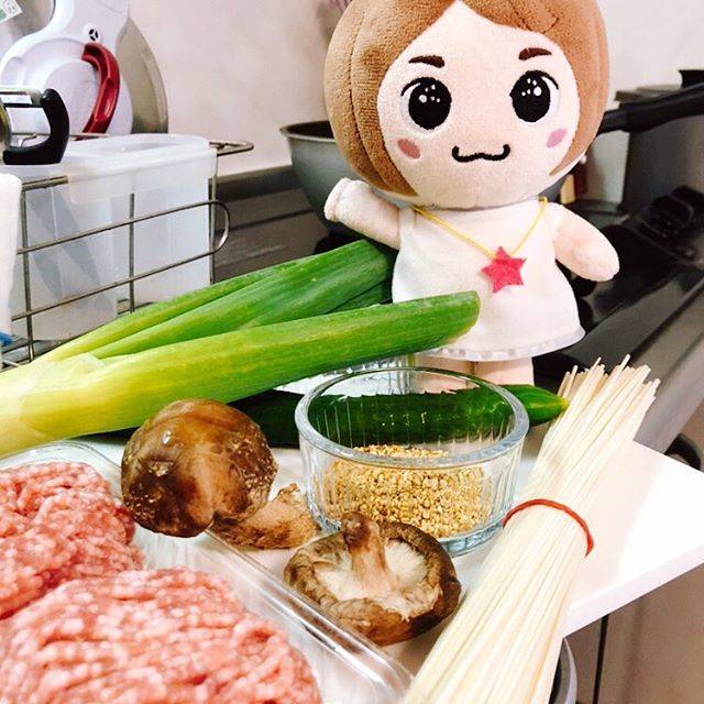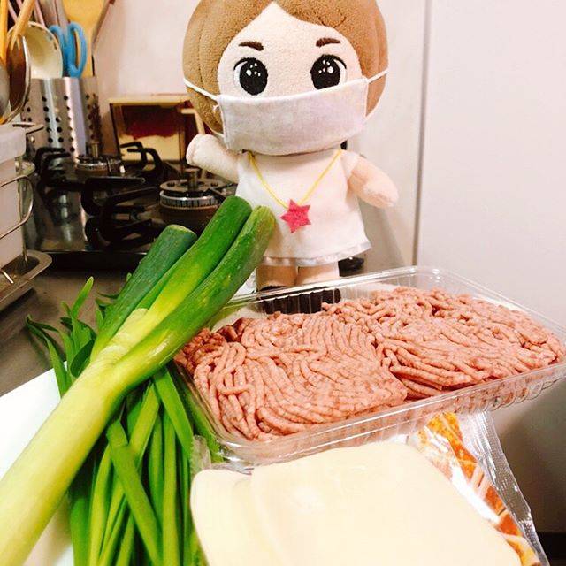 ネギとニラを細かく刻んで挽き肉と混ぜて餡を作ります❗️