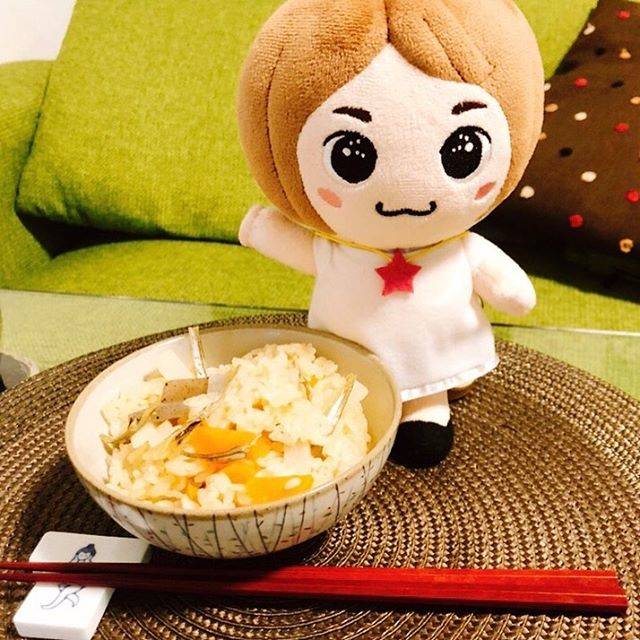 身の部分は研いだお米とたくさんの根菜(大根、にんじん、里芋)・こんにゃく・油揚げと一緒に炊飯器にインっ❗️