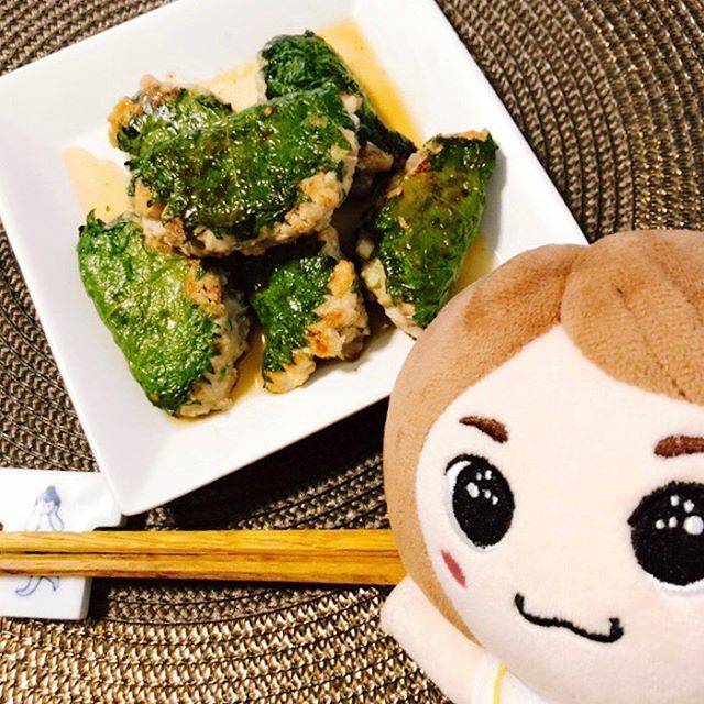 大葉に包んでフライパンで焼いたら完成でーす✨✨