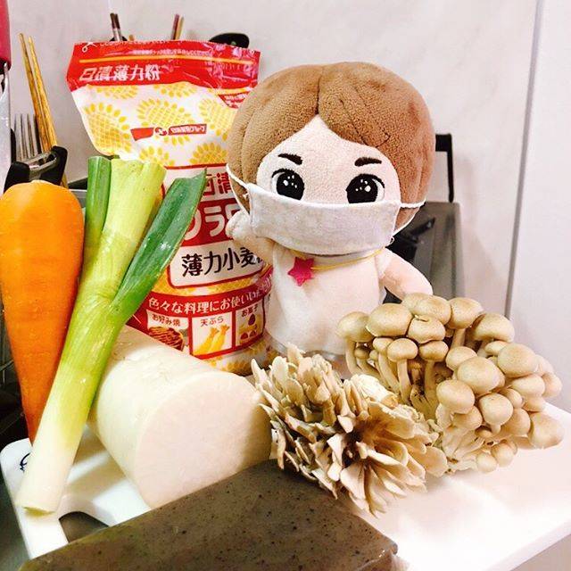 群馬名産のきのことこんにゃく、お野菜たくさん使ったよー🥕
