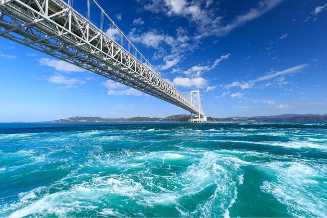 鳴門の渦潮は、世界三大潮流の一つに数えられるダイナミックな自然現象。激しい潮の流れがぶつかり合う光景は、まさに自然の驚異です。