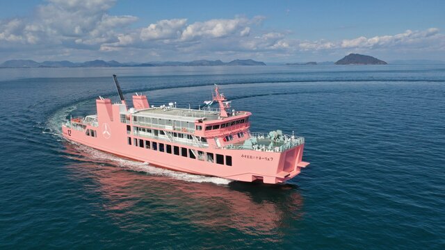 車でフェリーに乗るなんて初めての経験で、ちょっぴりドキドキしましたが、係の方の慣れた案内で安心して乗船。