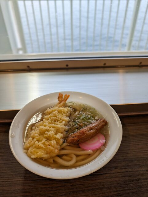 船内に入ると出汁のいい香りが漂っていてフェリー名物のうどんが販売されいるのを発見!