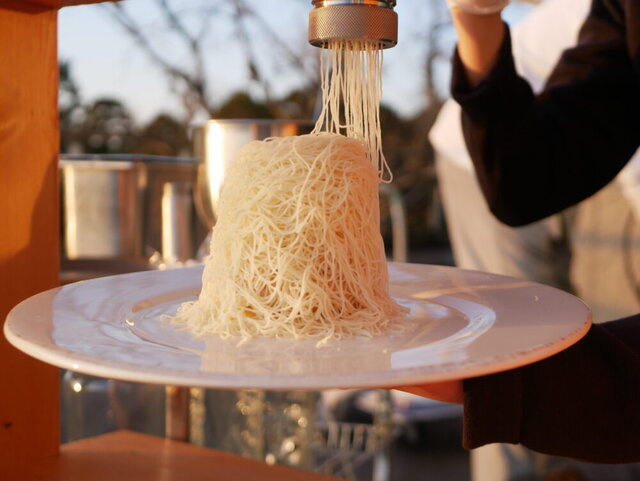 ハーブティーと共にいただけるのは、なんと賞味期限15分!の生絞り極上芋のモンブラン!
