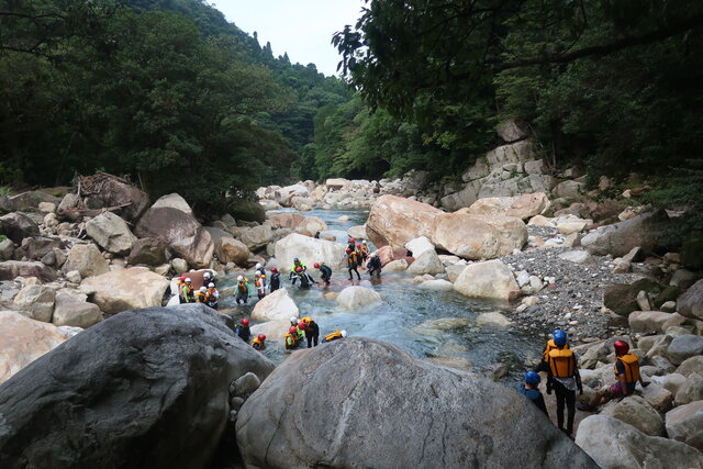 一緒に参加するメンバーといつの間にか不思議な一体感がうまれ、大自然のなかでダイナミックな水遊びを満喫!