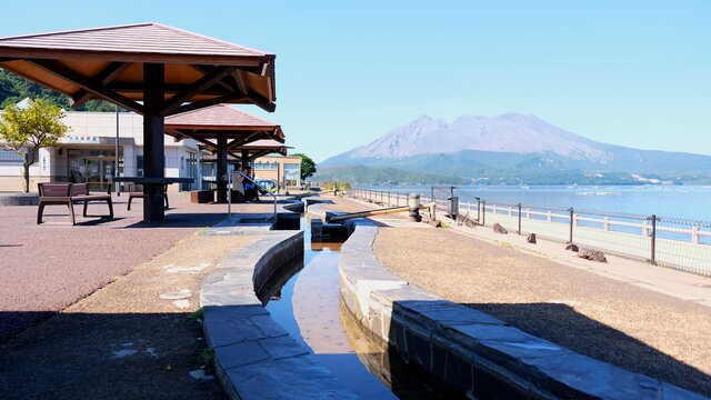 この道の駅には、鹿児島のシンボル桜島と穏やかな錦江湾を眺めながら入れる、日本最大級の天然温泉かけ流し足湯もあります。