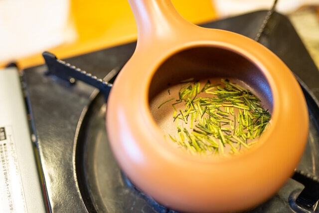 茎茶を焙烙で、ゆっくり火入れをして作れるオリジナルのほうじ茶は、旅の良きお土産に。